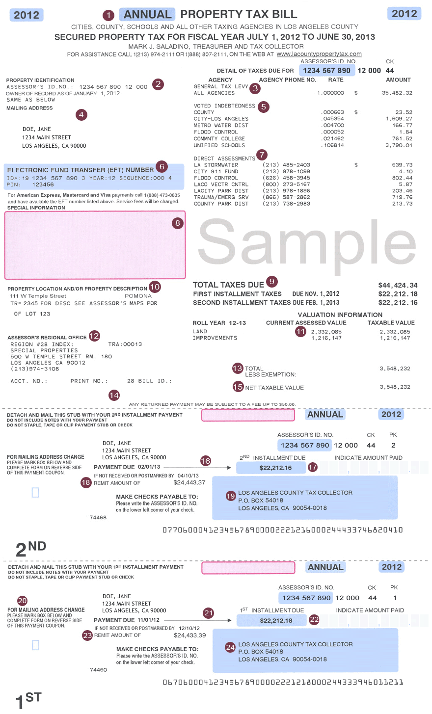 Annual Secured Property Tax Bill Los Angeles County Property Tax Portal