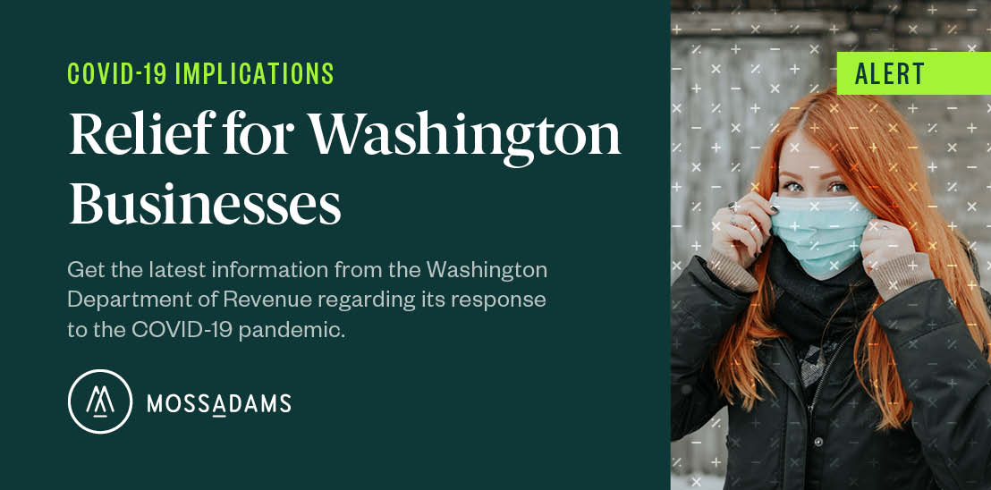 Business Relief During COVID-19 Pandemic. Candice Bock Maggie. Washington State Tax Structure Work Group to convene in early October.