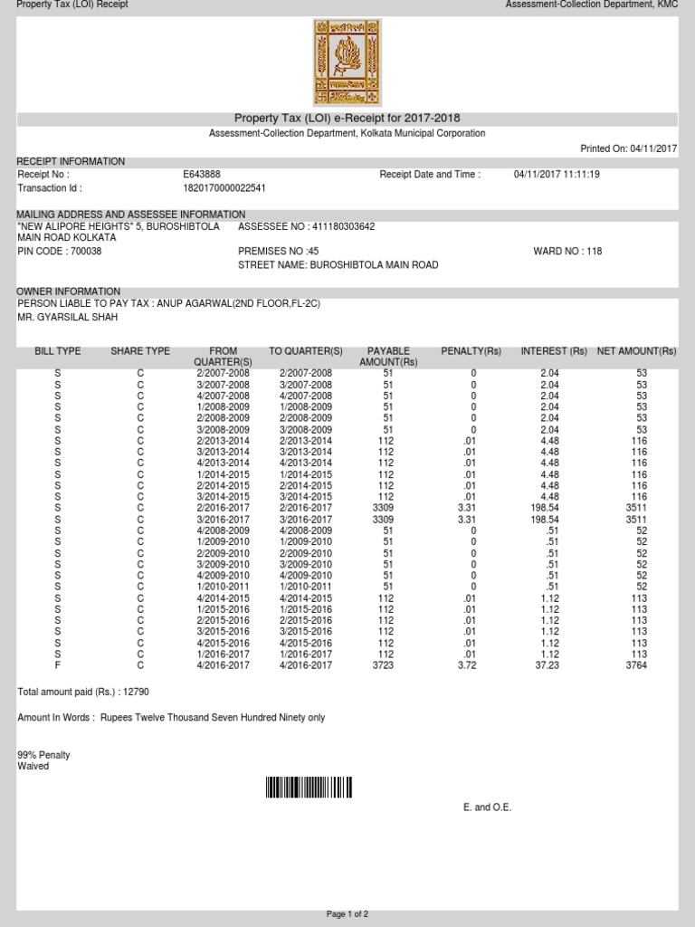 To make an online payment you must access your tax statement from the Statement Search and Payment screen. Kolkata Municipal CorporationPreservation and Maintenance of Water Body Regulations 2016. This printout can be produced at any common collection centers to make the paymentPlease contact the.